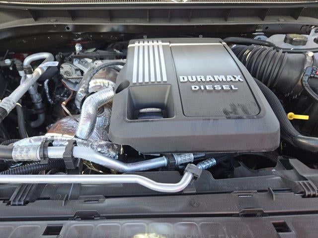 ENGINE, DURAMAX 3.0L TURBO-DIESEL I6 (305 hp [227 kW] @ 3750 rpm, 495 lb-ft of torque [671 Nm] @ 2750 rpm) (Includes (KW5) 220-amp alternator and (K05) engine block heater.), LPO, ASSIST STEPS - 4 BLACK - ROUND (dealer-installed), WHEELS, 20 X 9 (50.8 CM X 22.9 CM) HIGH GLOSS BLACK PAINTED ALUMINUM, AUDIO SYSTEM, CHEVROLET INFOTAINMENT 3 SYSTEM 7 diagonal HD color touchscreen, AM/FM stereo, Bluetooth® audio streaming for 2 active devices, voice command pass-through to phone, Wireless Apple CarPlay and Wireless Android Auto compatibility (STD), TRANSMISSION, 10-SPEED AUTOMATIC, ELECTRONICALLY CONTROLLED with overdrive and tow/haul mode. Includes Cruise Grade Braking and Powertrain Grade Braking. Chevrolet Custom Trail Boss with Red Hot exterior and Jet Black interior features a Straight 6 Cylinder Engine with 305 HP at 3750 RPM*.