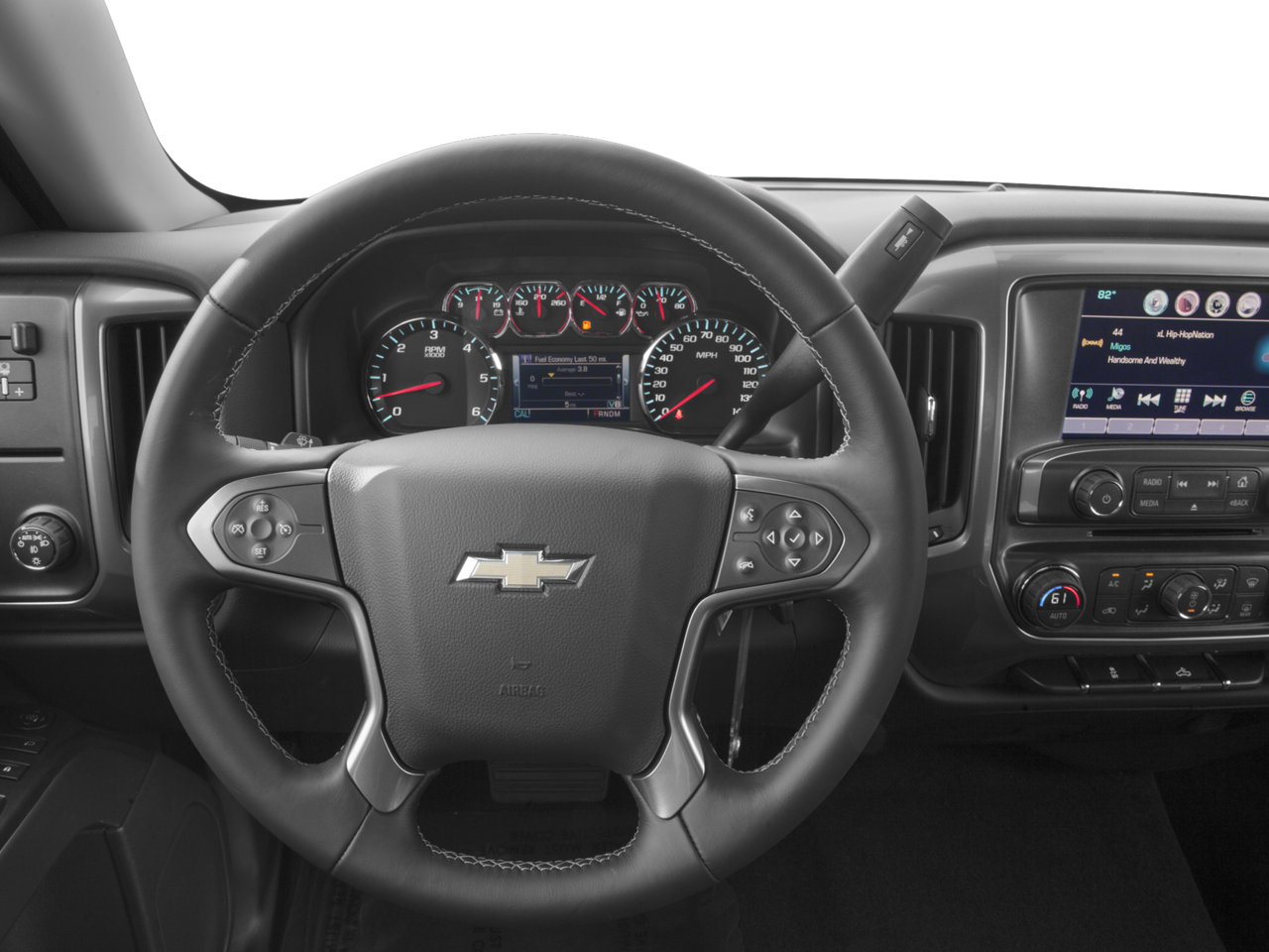 ALL STAR EDITION for Crew Cab and Double Cab, includes (AG1) driver 10-way power seat adjuster with (AZ3) bench seat only, (CJ2) dual-zone climate control, (BTV) Remote Vehicle Starter system, (UVC) Rear Vision Camera, (C49) rear-window defogger and (KI4) 110-volt power outlet (N37) manual tilt and telescopic steering column included with (L83) 5.3L EcoTec3 V8 engine.), ENGINE, 5.3L ECOTEC3 V8 WITH ACTIVE FUEL MANAGEMENT, DIRECT INJECTION AND VARIABLE VALVE TIMING includes aluminum block construction (355 hp [265 kW] @ 5600 rpm, 383 lb-ft of torque [518 Nm] @ 4100 rpm; more than 300 lb-ft of torque from 2000 to 5600 rpm), AUDIO SYSTEM, CHEVROLET MYLINK RADIO WITH NAVIGATION AND 8 DIAGONAL COLOR TOUCH-SCREEN, AM/FM STEREO with seek-and-scan and digital clock, includes Bluetooth® streaming audio for music and select phones; USB ports; auxiliary jack; voice-activated technology for radio and phone; featuring Apple CarPlay capability for compatible phone. SEATS, FRONT 40/20/40 SPLIT-BENCH, 3-PASSENGER, AVAILABLE IN CLOTH OR LEATHER includes driver and front passenger recline with outboard head restraints and center fold-down armrest with storage. Also includes manually adjustable driver lumbar, lockable storage compartment in seat cushion, and storage pockets. (STD) Includes (AG1) driver 10-way power seat-adjuster with (PCM) LT Convenience Package, (PDA) Texas Edition or (PDU) All Star Edition.), REMOTE VEHICLE STARTER SYSTEM Includes (UTJ) Theft-deterrent system.), TRANSMISSION, 6-SPEED AUTOMATIC, ELECTRONICALLY CONTROLLED with overdrive and tow/haul mode. Includes Cruise Grade Braking and Powertrain Grade Braking (STD). Chevrolet LT with Summit White exterior and Jet Black interior features a 8 Cylinder Engine with 285 HP at 5300 RPM*.