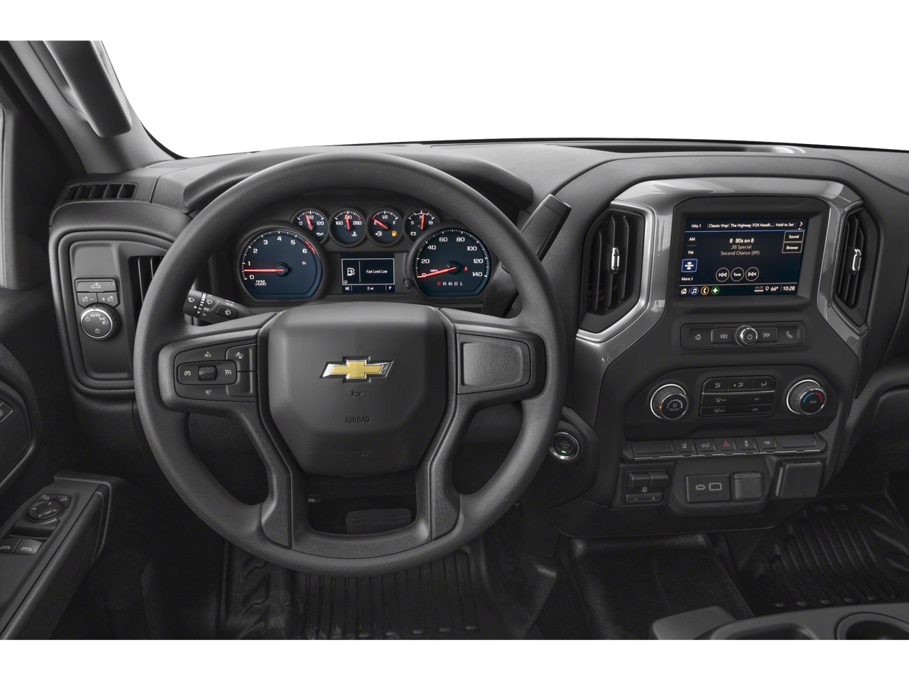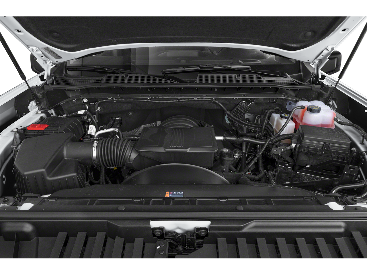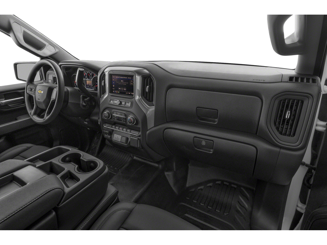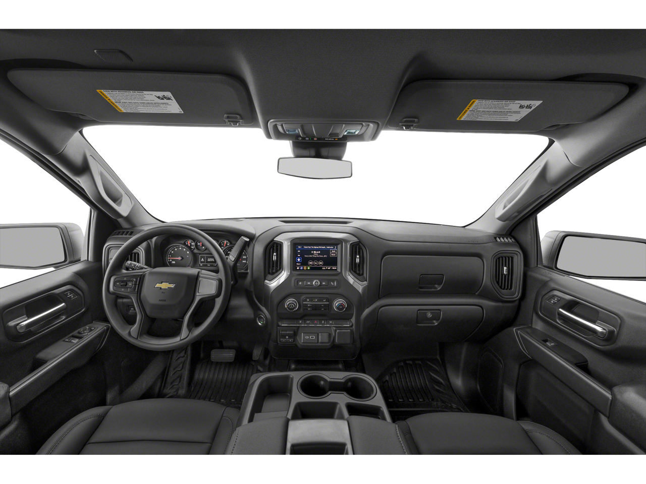 MIRRORS, OUTSIDE POWER-ADJUSTABLE VERTICAL TRAILERING WITH HEATED AND AUTO-DIMMING UPPER GLASS lower convex mirrors, turn signal indicators, puddle lamps, (U12) perimeter lighting, auxiliary lighting, power folding/manual extending (extends 3.31" [84.25mm]) Includes (DD8) auto-dimming rearview mirror. WHEELS, 18" (45.7 CM) PAINTED STEEL, GLASS, DEEP-TINTED, AUDIO SYSTEM, CHEVROLET INFOTAINMENT 3 SYSTEM 7" diagonal HD color touchscreen, AM/FM stereo, Bluetooth® audio streaming for 2 active devices, voice command pass-through to phone, Wireless Apple CarPlay® and Wireless Android Auto® compatibility (STD), ENGINE, 6.6L V8 with Direct Injection and Variable Valve Timing, gasoline, (401 hp [299 kW] @ 5200 rpm, 464 lb-ft of torque [629 N-m] @ 4000 rpm) (STD), TRANSMISSION, 10-SPEED AUTOMATIC (STD). Chevrolet Work Truck with Black exterior and Jet Black interior features a 8 Cylinder Engine with 401 HP at 5200 RPM*.